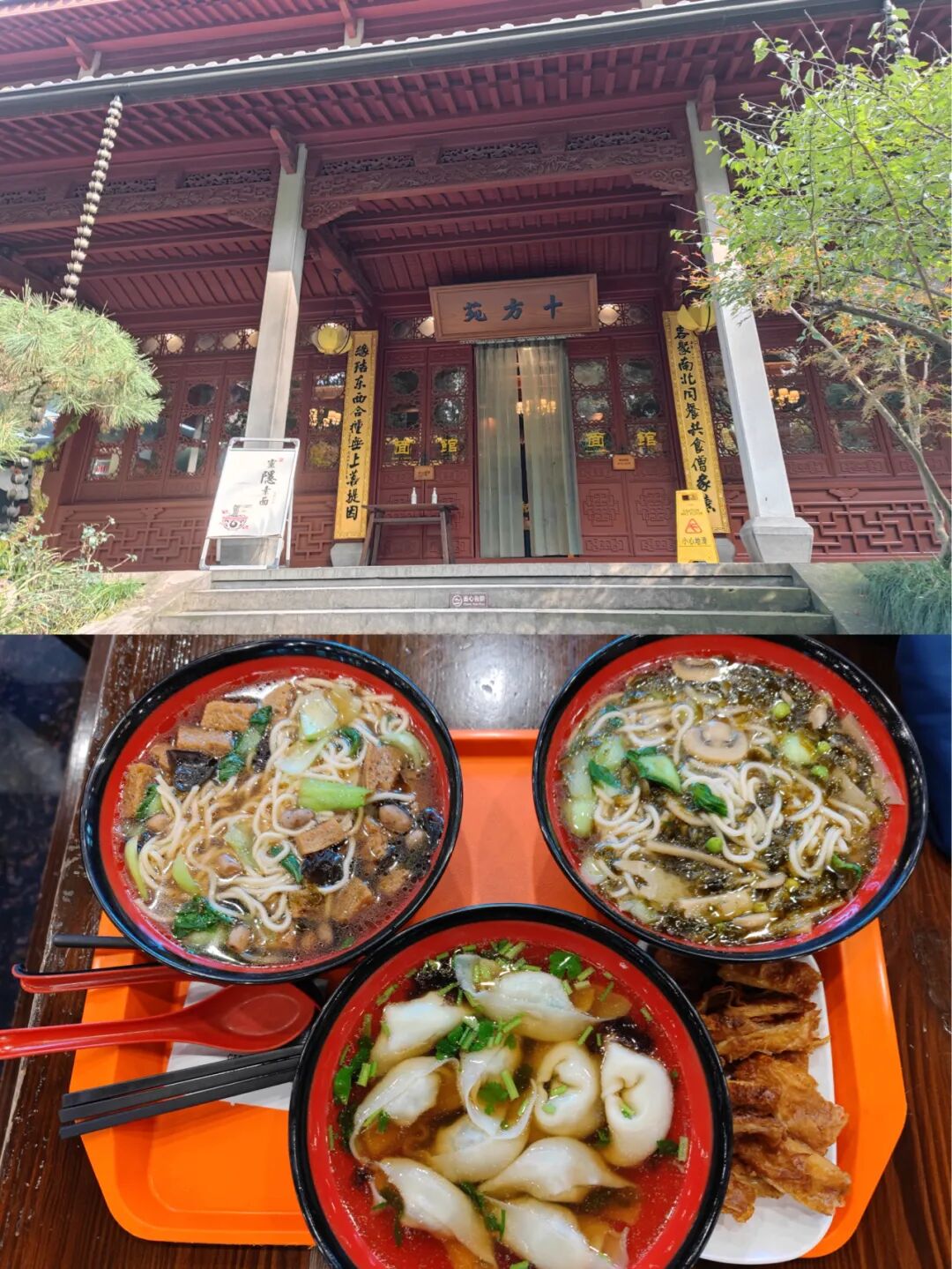 寺里的十方苑,点了两碗素面,一碗素馄饨,一盘素鹅。