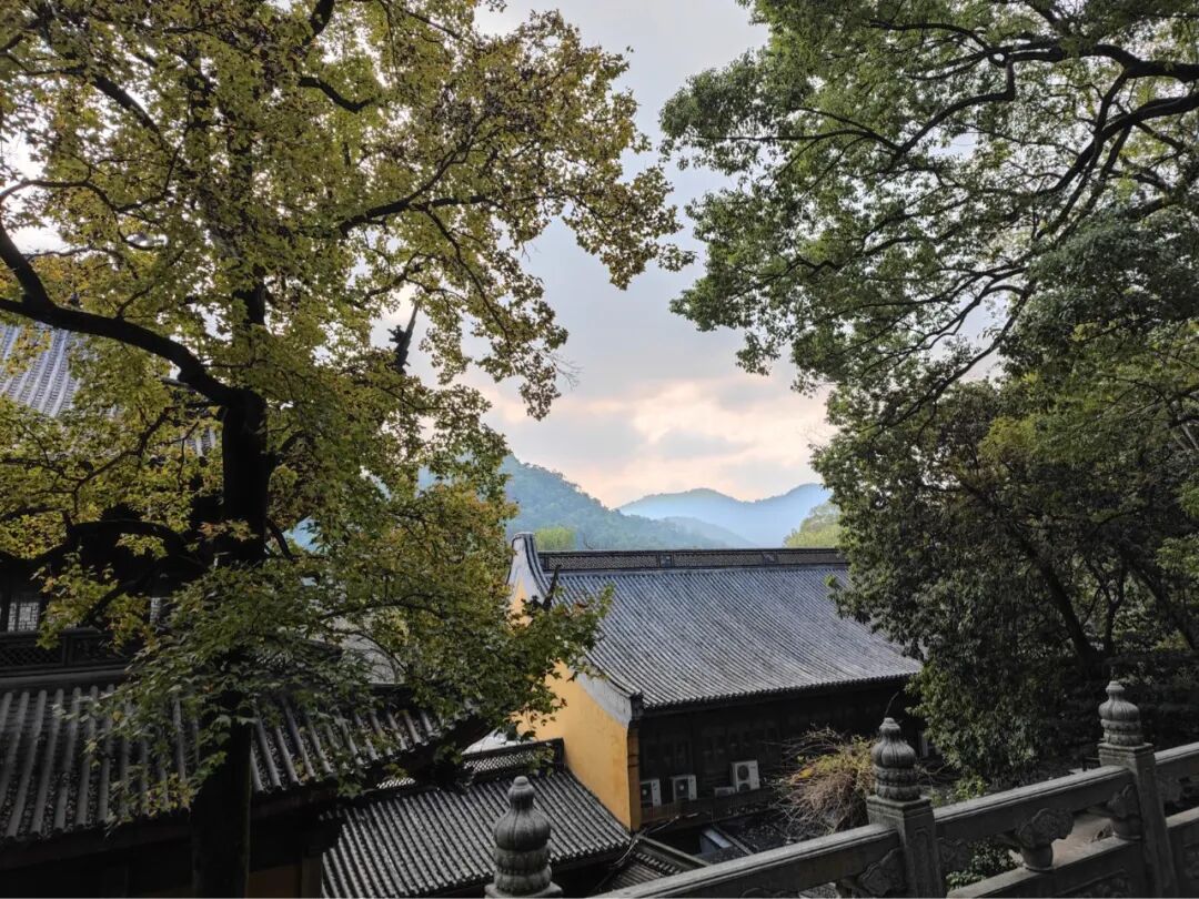 灵隐寺,当年李叔同在这里出家,面对跪在寺门外三天的妻儿不为所动,斩断尘缘。一念放下,万般从容。