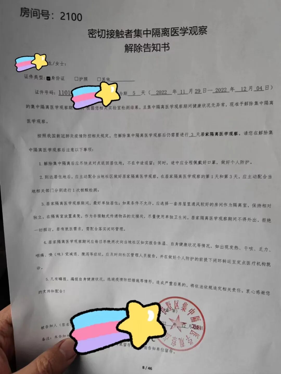 问了,给我的回答是这里要住进新的密接。我也是密接啊?搞不懂,但人家要求我就配合吧。