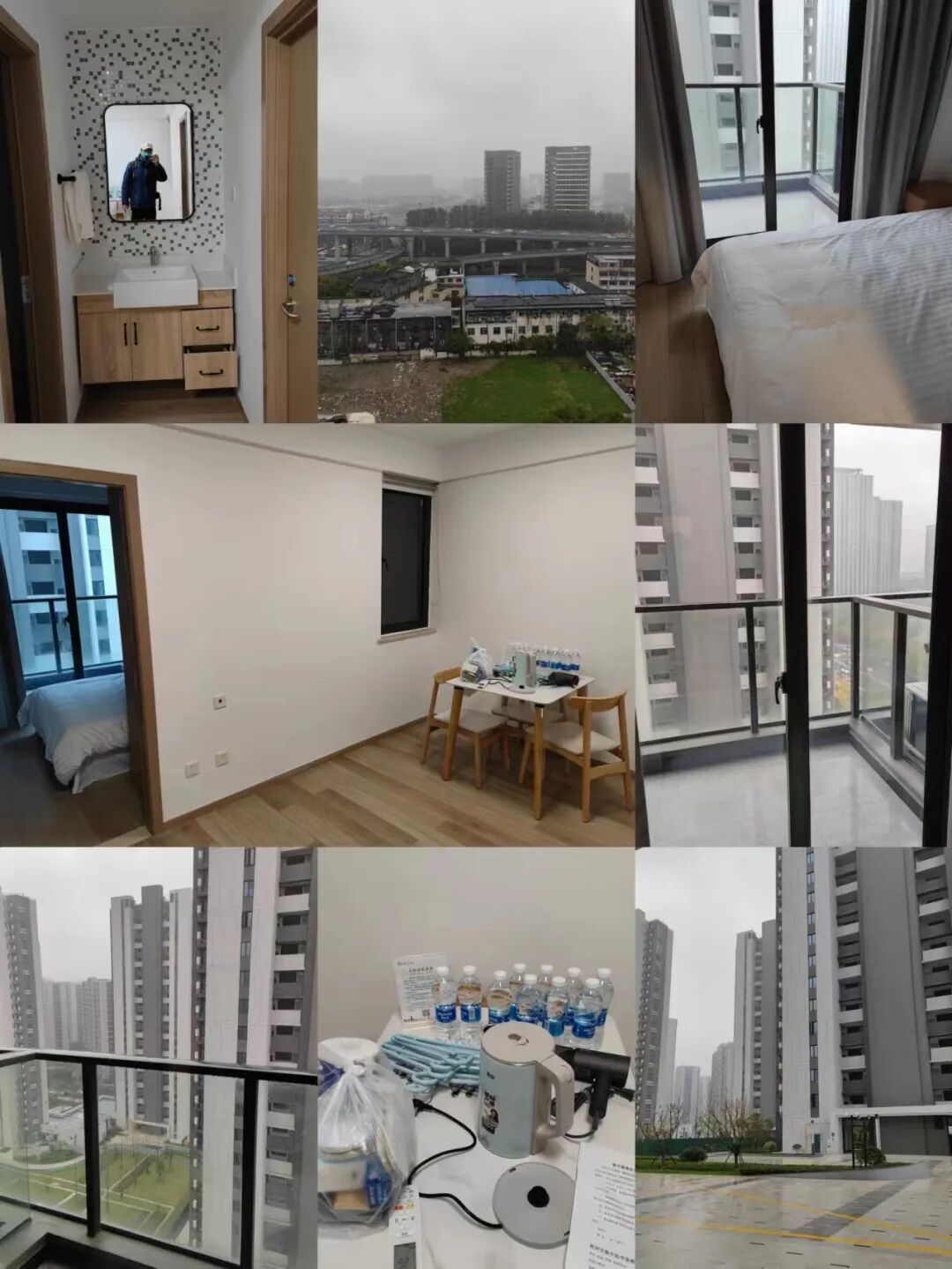 隔离点是个新住宅小区。进到房间,这就是个全新的两居室,雪白的墙壁,全新的门窗和空调,厨卫一应俱全,只不过厨房、其中一间卧室和阳台是钉死的,进不去。