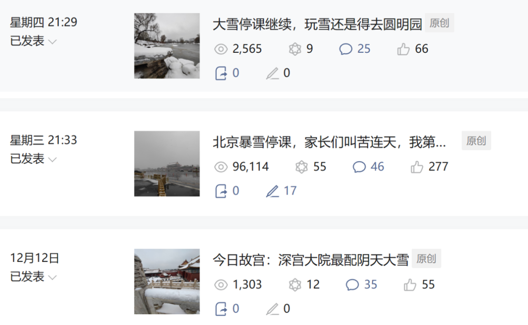 就在上个月,我跟胡子去香山前,我的关注是2000多,一篇9万阅读的爬香山,涨了一倍多的关注,到4000;前几天的北京暴雪,又涨了接近1000的关注。