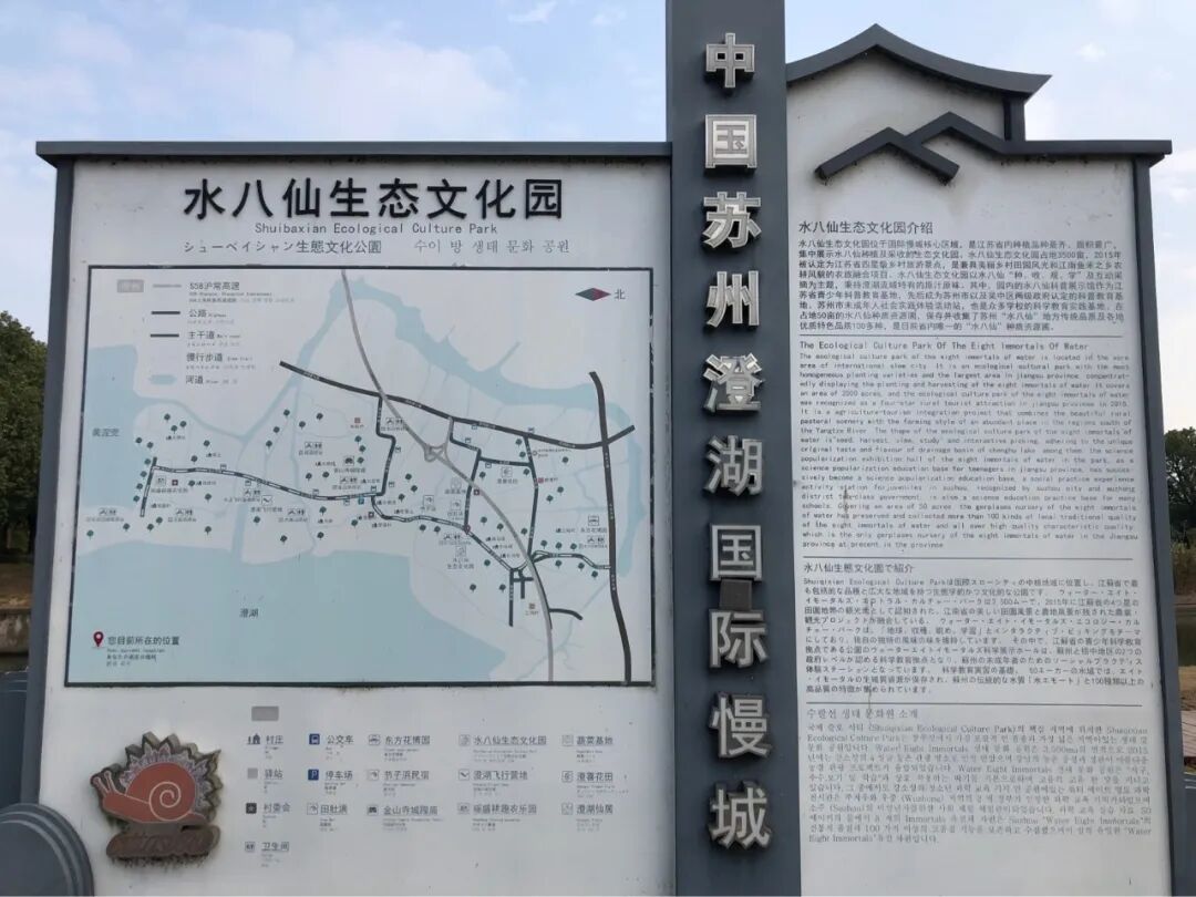 村旁是水八仙生态园,水八仙是苏南、浙北地区的传统食物,又称水八鲜,包括茭白、莲藕、水芹、芡实(鸡头米)、茨菰(慈菇)、荸荠、莼菜、菱八种水生植物。