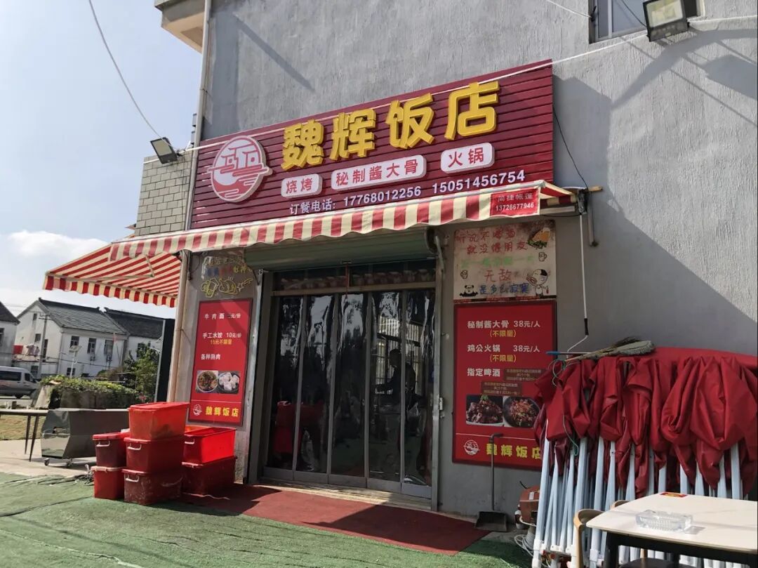 村口有家很气派的饭店,各种不限量。