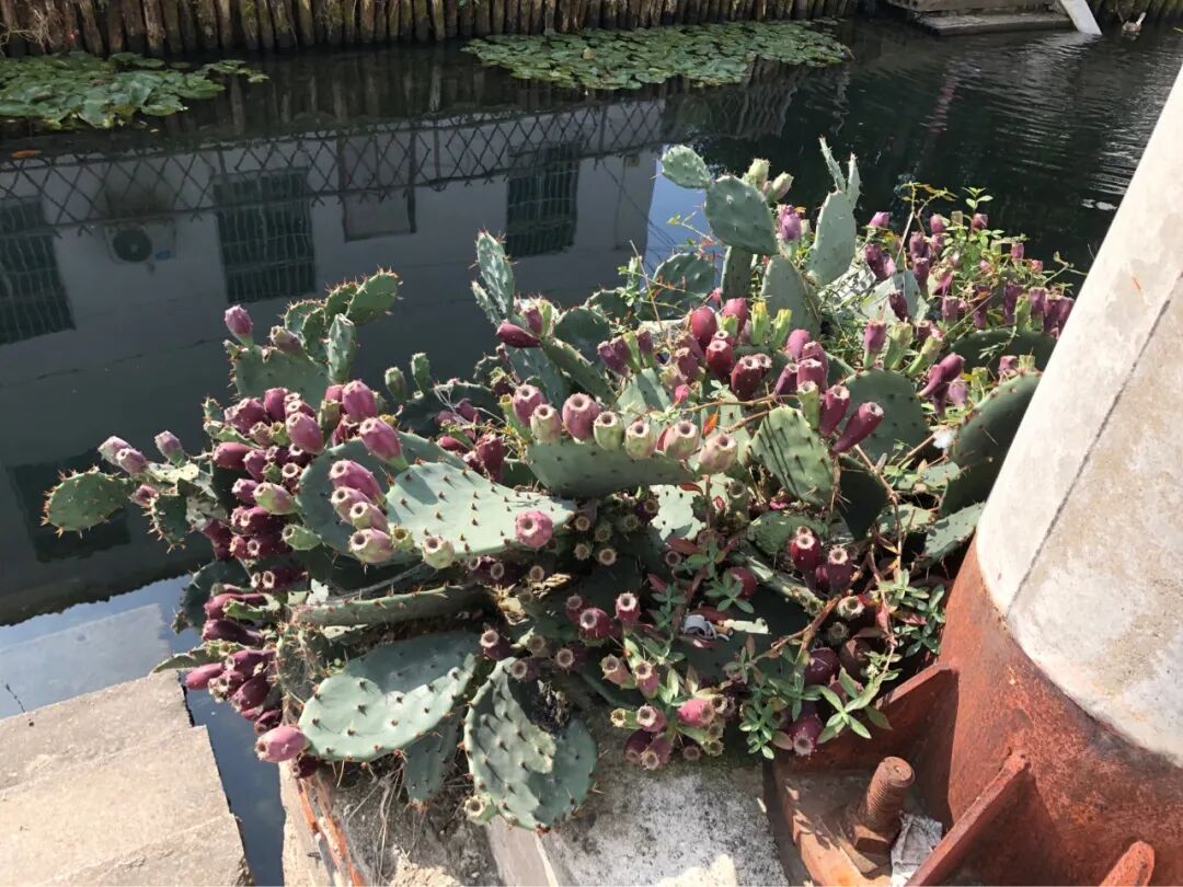 河边的仙人掌果,没人摘,都掉进河里。
