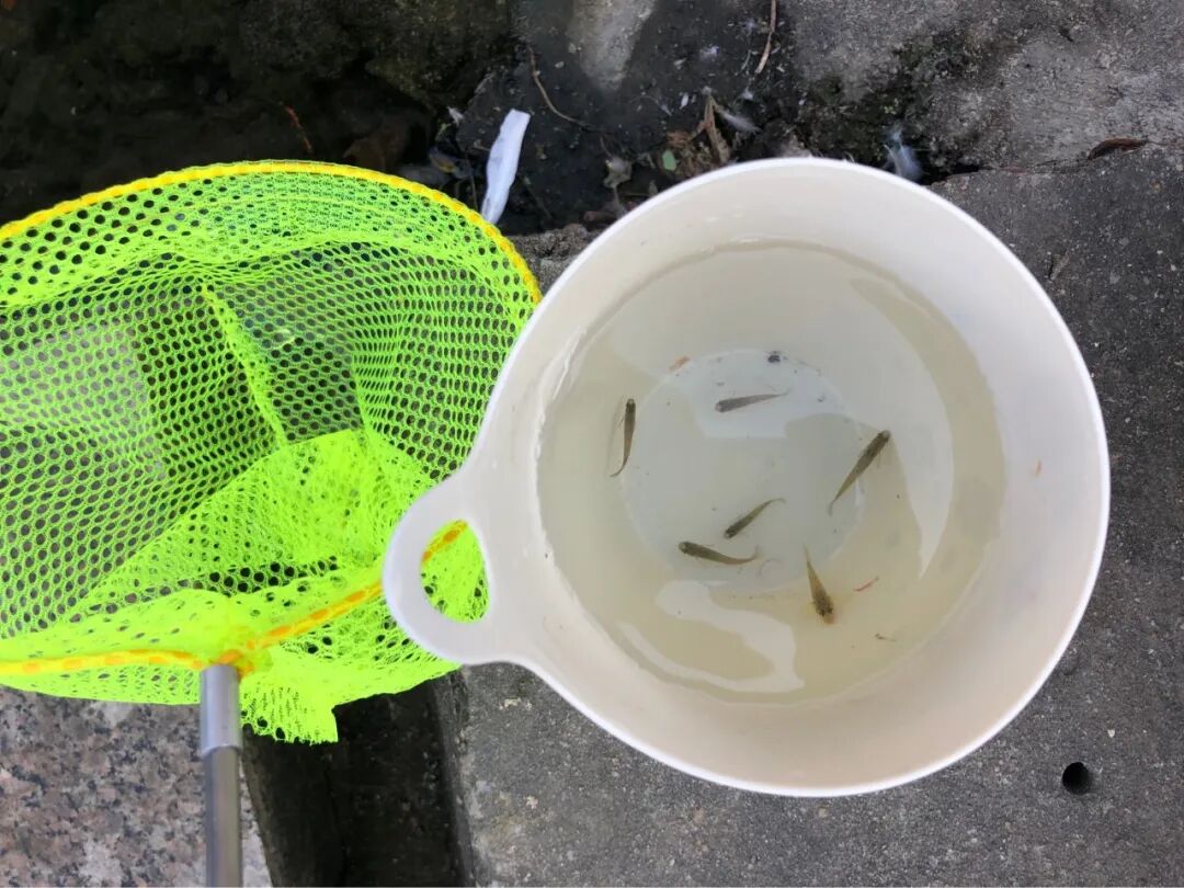 经过2个多小时的鏖战,我还是把捞鱼的事想简单了,虽然鱼很多,但太灵活,我的渔网是孩子用的,而且颜色太鲜亮,我一靠近,鱼就跑了。