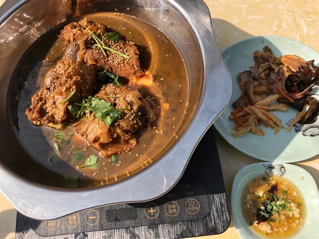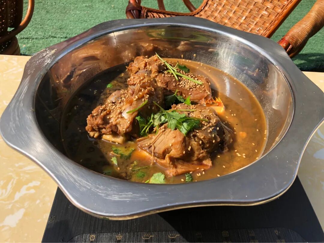 三块酱大骨的锅端上来,老板说随便吃,不限量,我想这足够了。