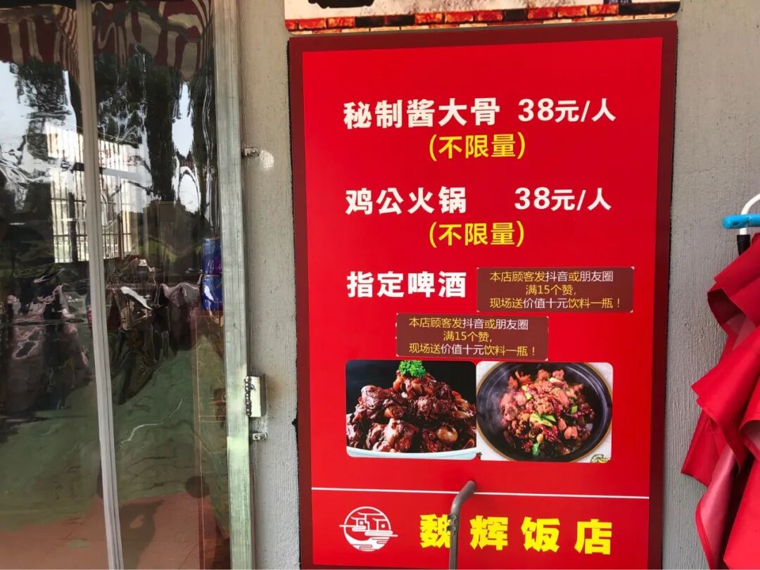 10元牛肉面、15元水饺(不限量)、38元秘制酱大骨(不限量)、38元鸡公火锅(不限量)。