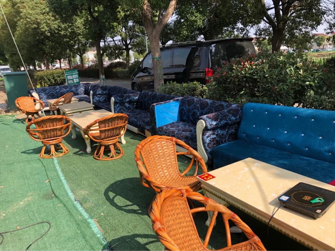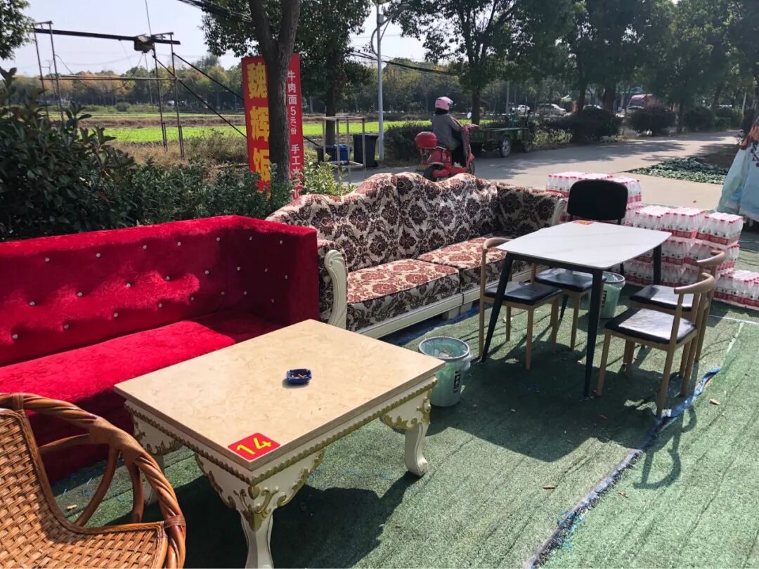 饭店有个露天广场,摆着各种沙发茶几,让人怀疑夜深之后,这里会不会摇身一变露天KTV?