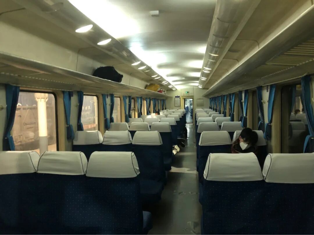 空旷的绿皮火车,不是没有人,三人座的基本都有人在躺着。