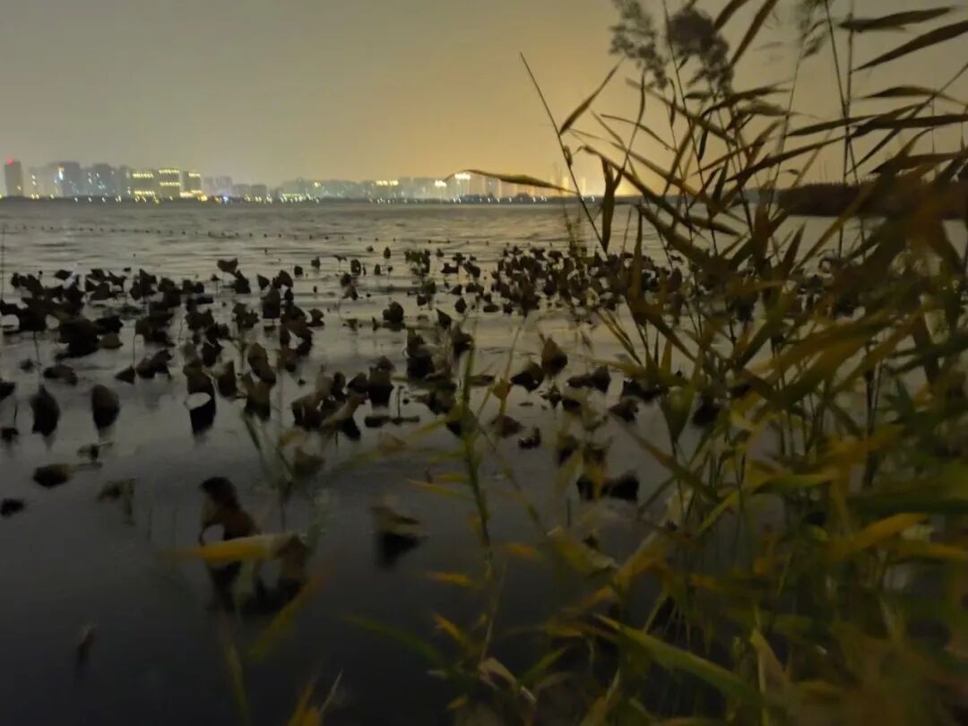 走了将近2个小时,走到湖的东南角,这里不再是黑漆漆的路,有一片灯光明亮的建筑,很好看,虽然也没有什么人。