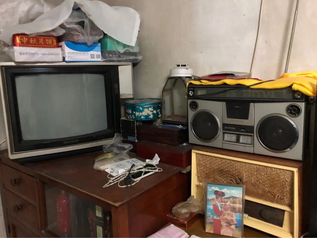 比我岁数还大的物件比比皆是。床、柜子、桌椅等家居都是我爷爷自己做的,用了几十年除了脏点都很结实。灯还都是长管的日光灯,开关还是拉绳的,空调早都从白色变成黄色,暖气还是最老式的铸铁暖气片,显像管电视、大个的收音机,以及我小时候最爱玩的缝纫机仍旧在。