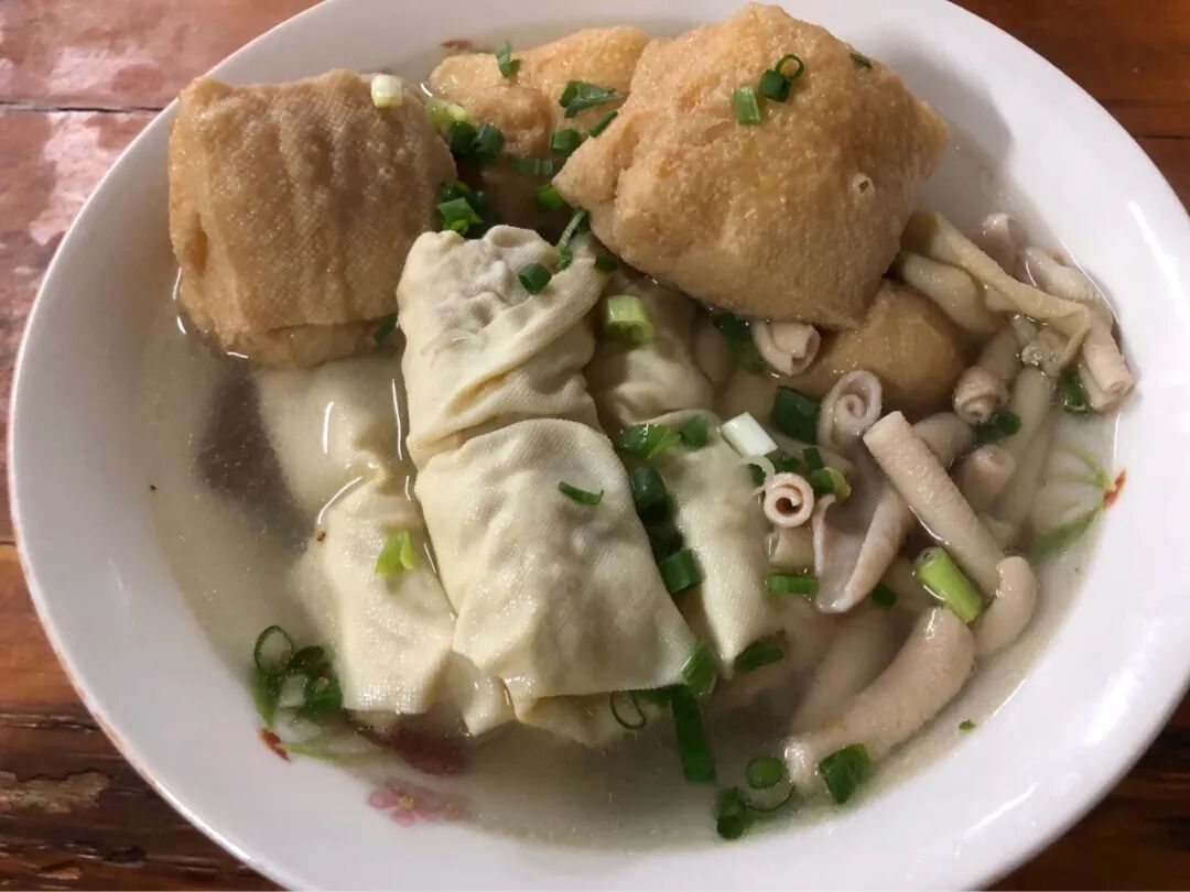 我要了一碗肠血面结汤加油豆腐,别人点面结面和葱油面的很多,但我有猪油糕了,实在吃不下面了。