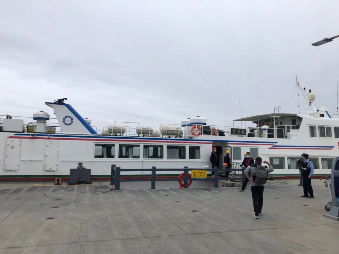 这次的船和来的不一样,来的时候船大,可以载汽车,这次的船只载人。
