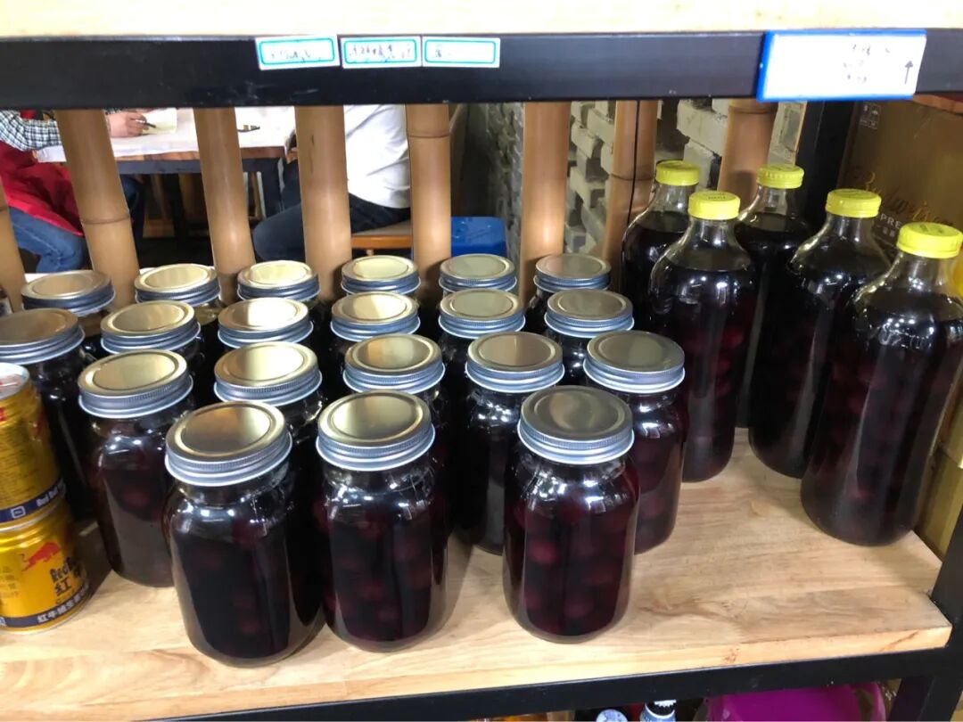 饭店自制的杨梅酒,同时也有卖我昨天喝的那个杨梅酒,老板说那个和这个比,那个就是垃圾。我已经吃完了,但很想喝杨梅酒,就买了一瓶回去找时间喝,我知道昨天的杨梅酒是勾兑的很一般,我想尝尝好的杨梅酒是啥滋味。