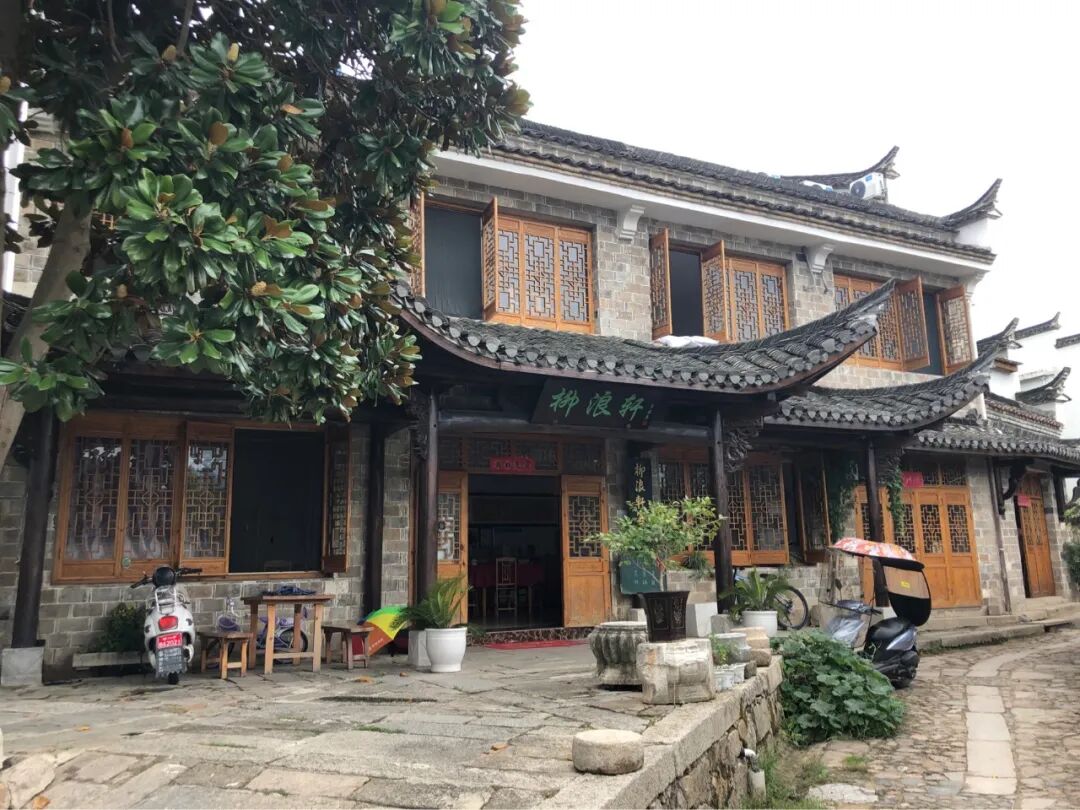 门口有两三张石桌石椅,坐在巷子里、人家家门口吃饭,够体验生活了。