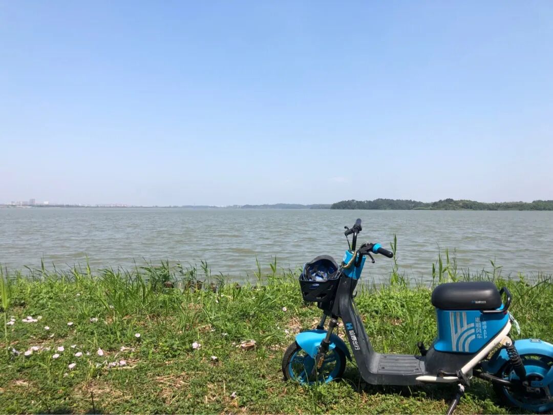 我突然想,骑着共享电动车绕着湖边转一圈怎么样?