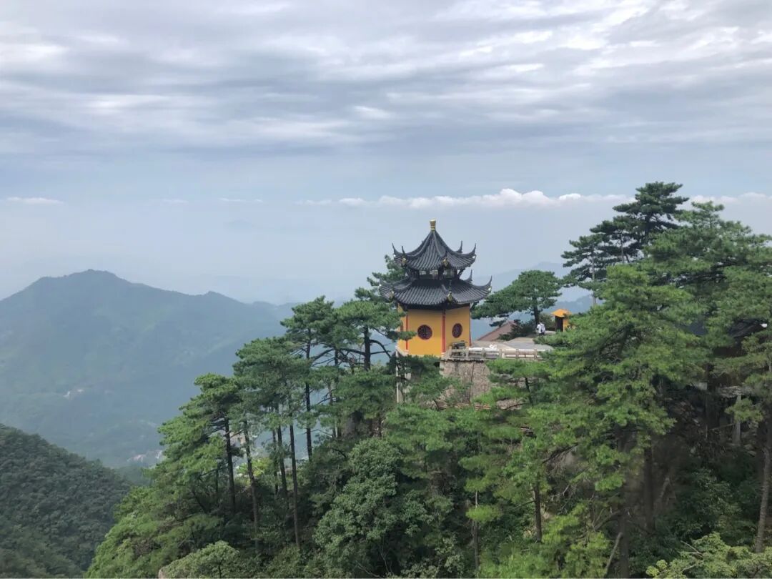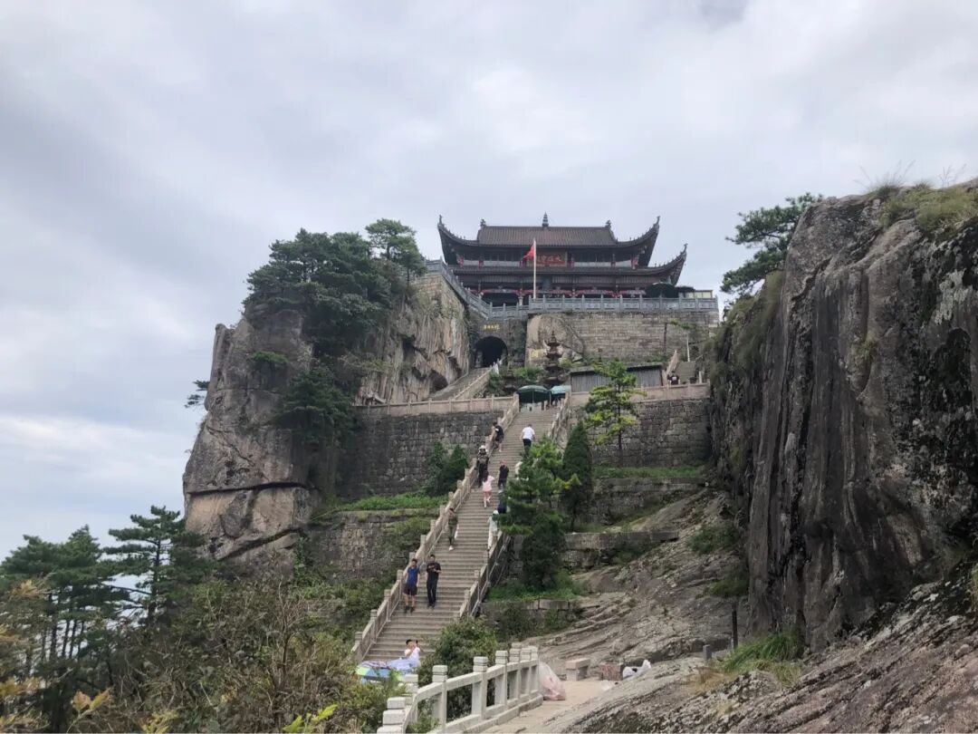 这里有建在山峰上的寺庙天台寺,还有九华山的最高峰十王峰。