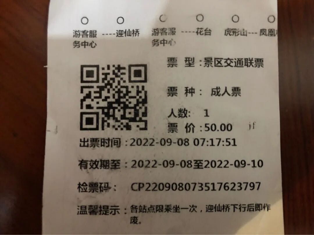 中午还是在山下用餐,然后去民宿退房,带上行李去客运站,买一张景区门票,160元。