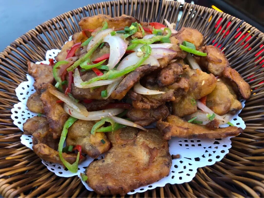 椒盐黄精,黄精也是种药材,这种做法吃起来略像红薯,不难吃。据说女的吃黄精更好,我纯粹是没吃过尝尝。