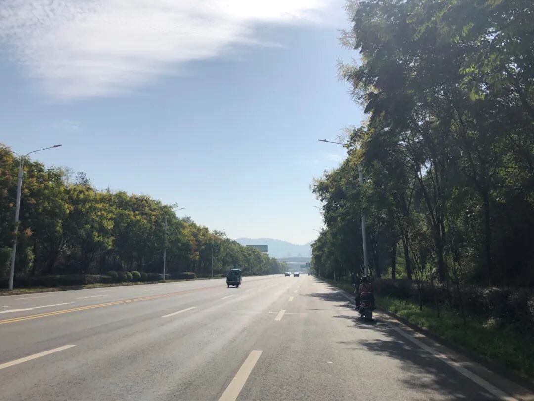 骑着小电动,经过一个很长的下坡,前方是铜陵站。