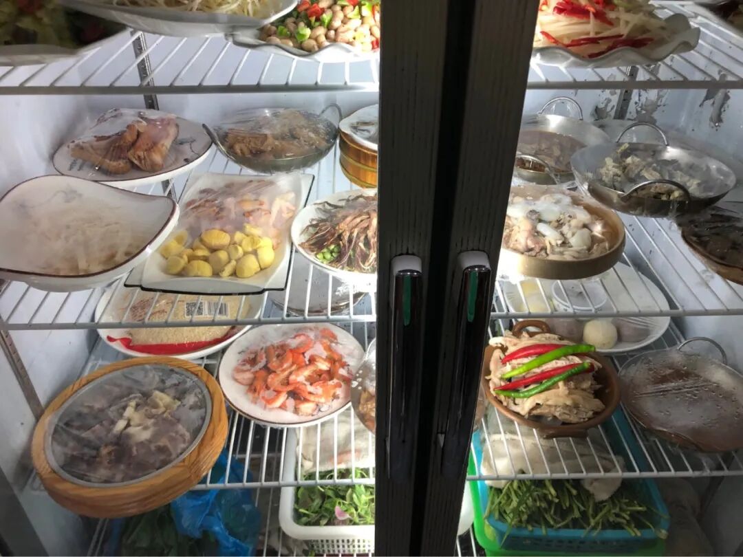 这些小饭馆是没有菜单的,点什么菜就在冰柜里面挑。