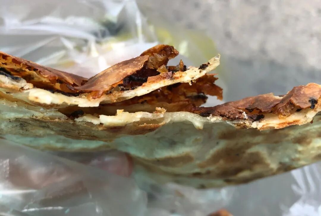 路边小吃很多啊。我在小店里吃了几个春卷几个汤包,又买了个梅干菜的锅盔,这个锅盔真好吃,5元一个。