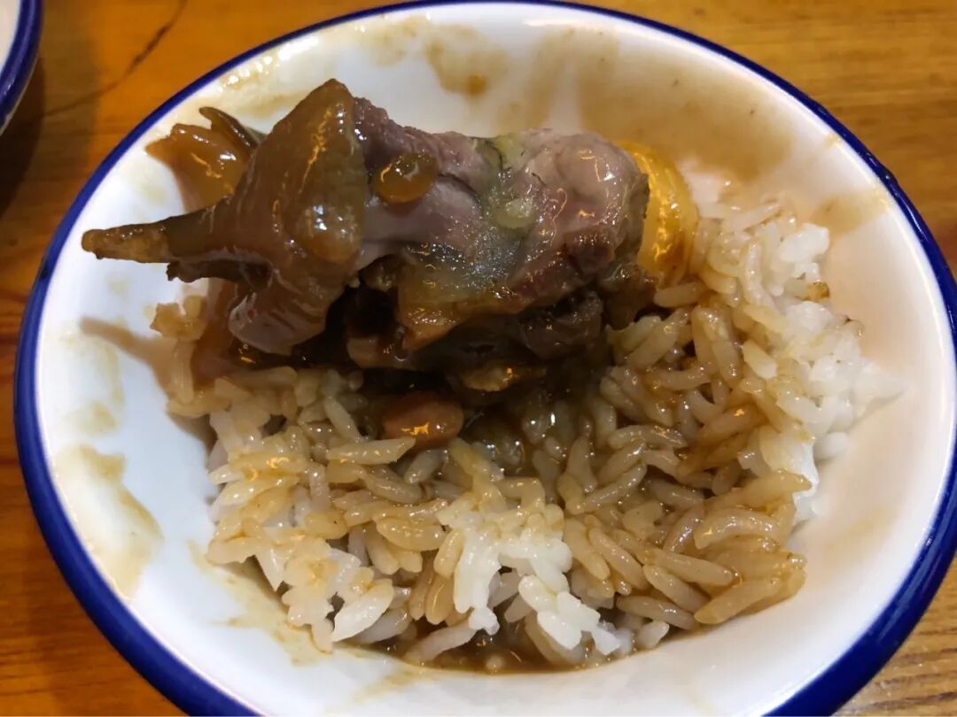 我把五花肉捡出,也不再吃米饭,勉强吃完了一只甲鱼。