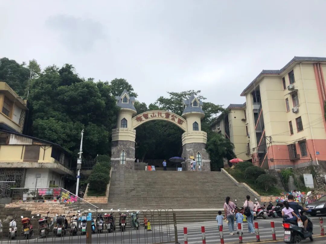 我看到了幼儿园、小学、中学,还有小花园、儿童公园。
