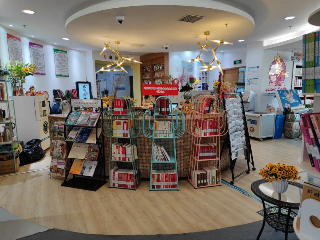 好多书架,很多书。