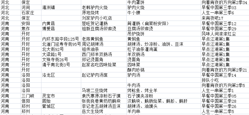 自从《舌尖上的中国》大火以来,许多美食纪录片层出不穷,这是一个很好的为我们提供建议的渠道,是每个人都可以轻易获取的,毕竟不是到任何一地都能找到当地的朋友给出中肯推荐的。我在这次出发之前,就看了几乎全部的美食纪录片,做了一个大的汇总表格,现在每到一地,就会点开这个表格查看,帮助决定去哪里吃。
