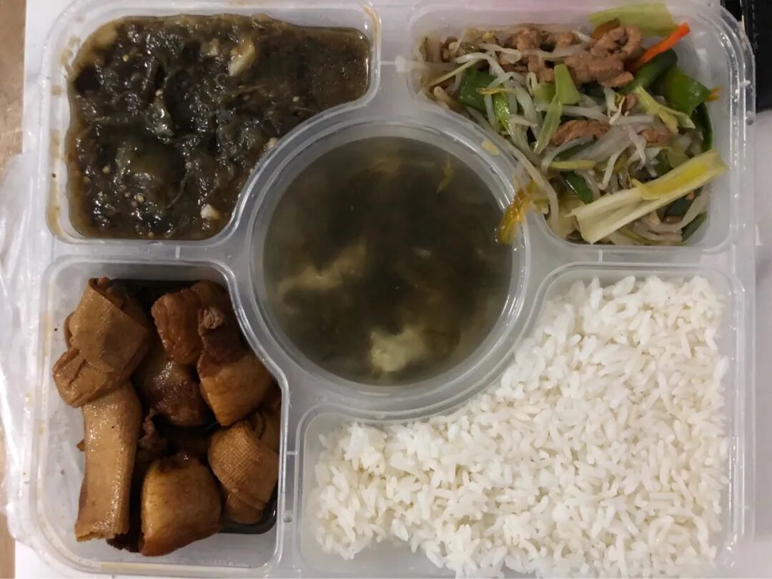 隔离房间住宿免费,吃饭要自己付钱,可以选择配餐,也可以选择自己订外卖。配餐早饭20元、午餐和晚餐25元三菜一汤一主食。我先订了一天的午饭和晚饭。