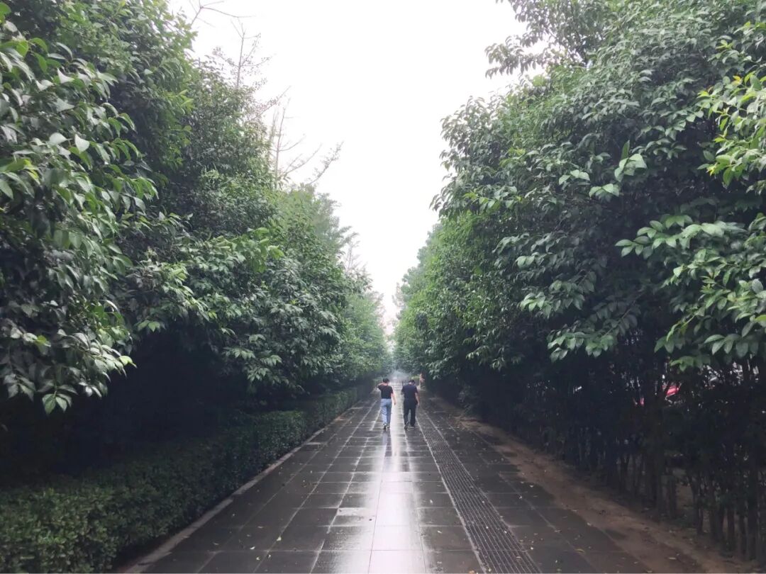 然后坐公交去邯郸博物馆。走过一条夹在两旁茂密植物中的小路。