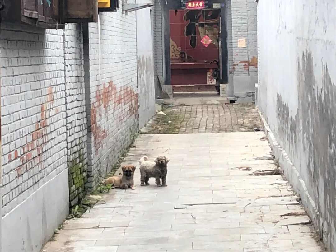 胡同里有两只小脏狗,看到我就跑过来,白色的小狗毛都黑了,对着我使劲的摇尾巴,小黄狗就一直跟着小白狗,形影不离。