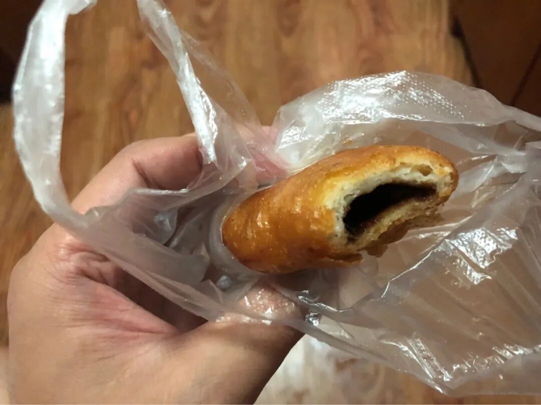 表皮很脆,里面我也说不上是啥糖,有点红糖味儿,但又不全是红糖。