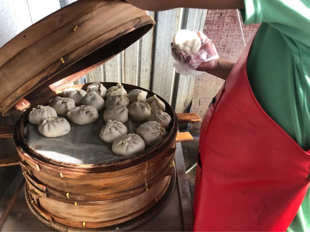 这时候,路边看到一个包子铺,人还不少,包子应该不错,正好吃口东西歇歇。