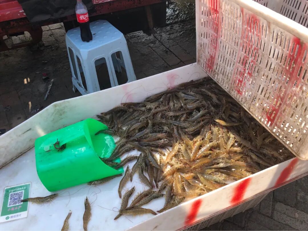 集市有卖各种东西的,双黄的咸鸭蛋看着好棒,藕也又白又大,还有各种鱼、虾、小龙虾。