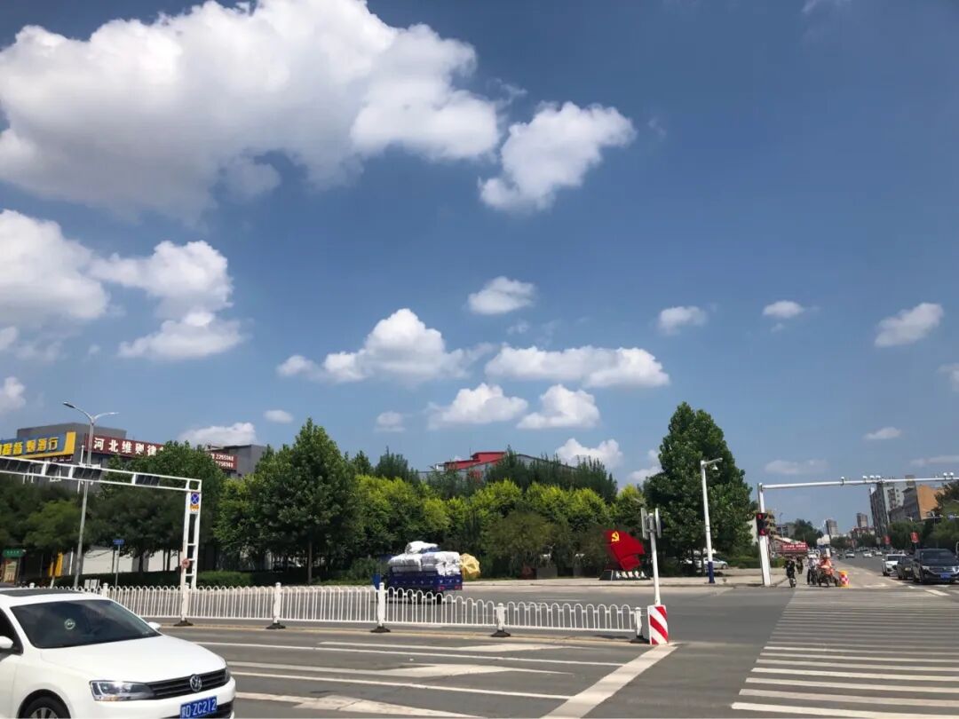 我突然对任丘的感觉很好,马路宽阔,街道整洁,今天的天气也很好。