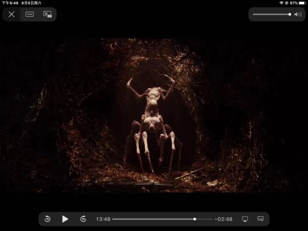 当我看到男主那张眼窝深陷、披肩散发的脸时,我是真的被震撼到了。幻觉与现实的巨大反差,美丽的女友实则是外星蜘蛛怪物。
