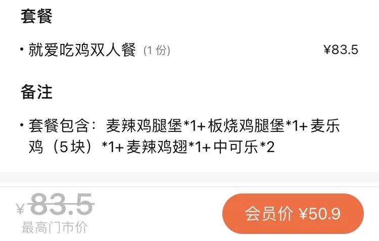 我最后选了个双人套餐,就爱吃鸡双人餐。这是我的七夕情人节套餐。