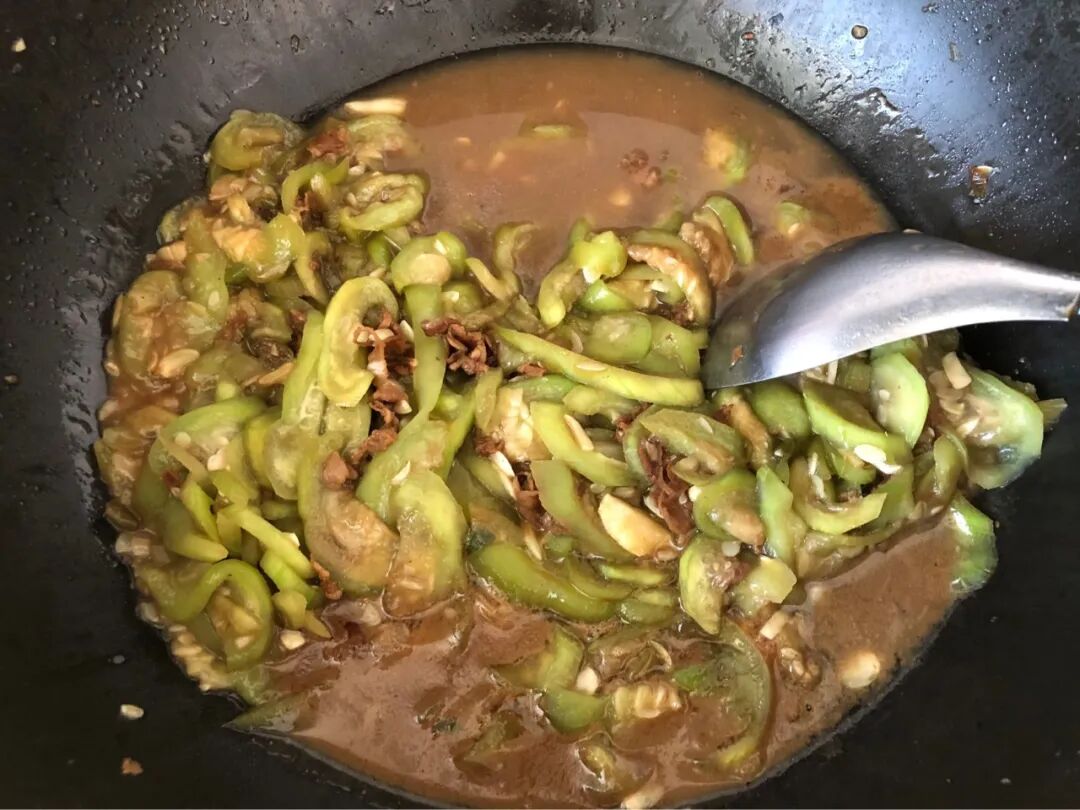 中午吃的我爸从地里摘的丝瓜炒羊肉片,伴着米饭,吃了一大碗。
