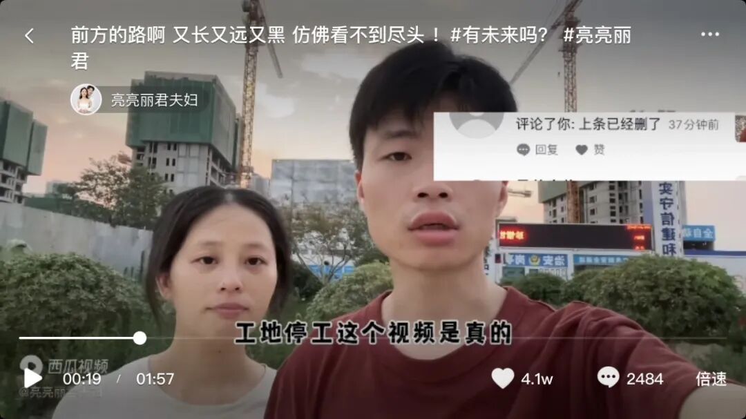 但他们房子烂尾的事,也迅速得到发酵,他们得到了很大的关注,现在抖音有20万的粉丝。
