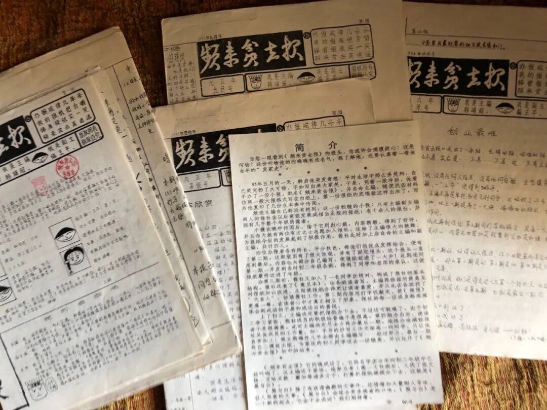 我想起前几天回父母那里,翻看以前的东西,找到初中时自己整的小报儿和高中时班里弄的文集。