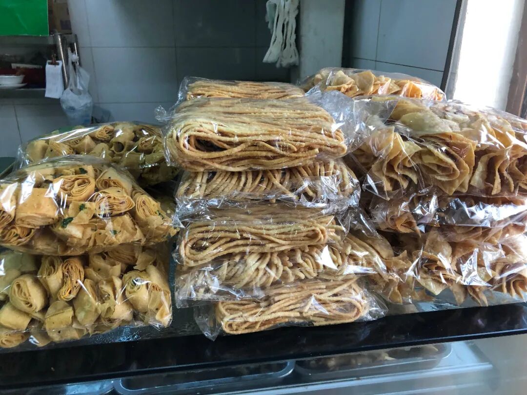 炸咯吱盒、散子和排叉儿,这个挺好的,可以买回家当小吃吃。