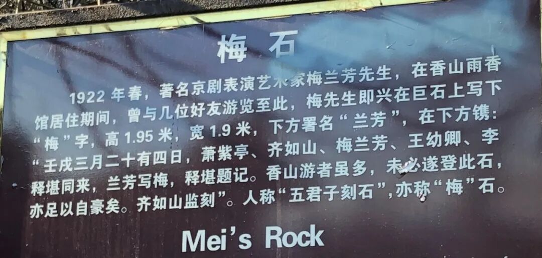 我今天的线路上到了梅石,是梅兰芳跟几个好友爬山时看到的一块巨石,兴起提了个字。今天,他和他当年的好友们已经都不在了。人生沧海一粟,我总觉得,别太执迷不悟,你当下舍命追求的,真值得么?