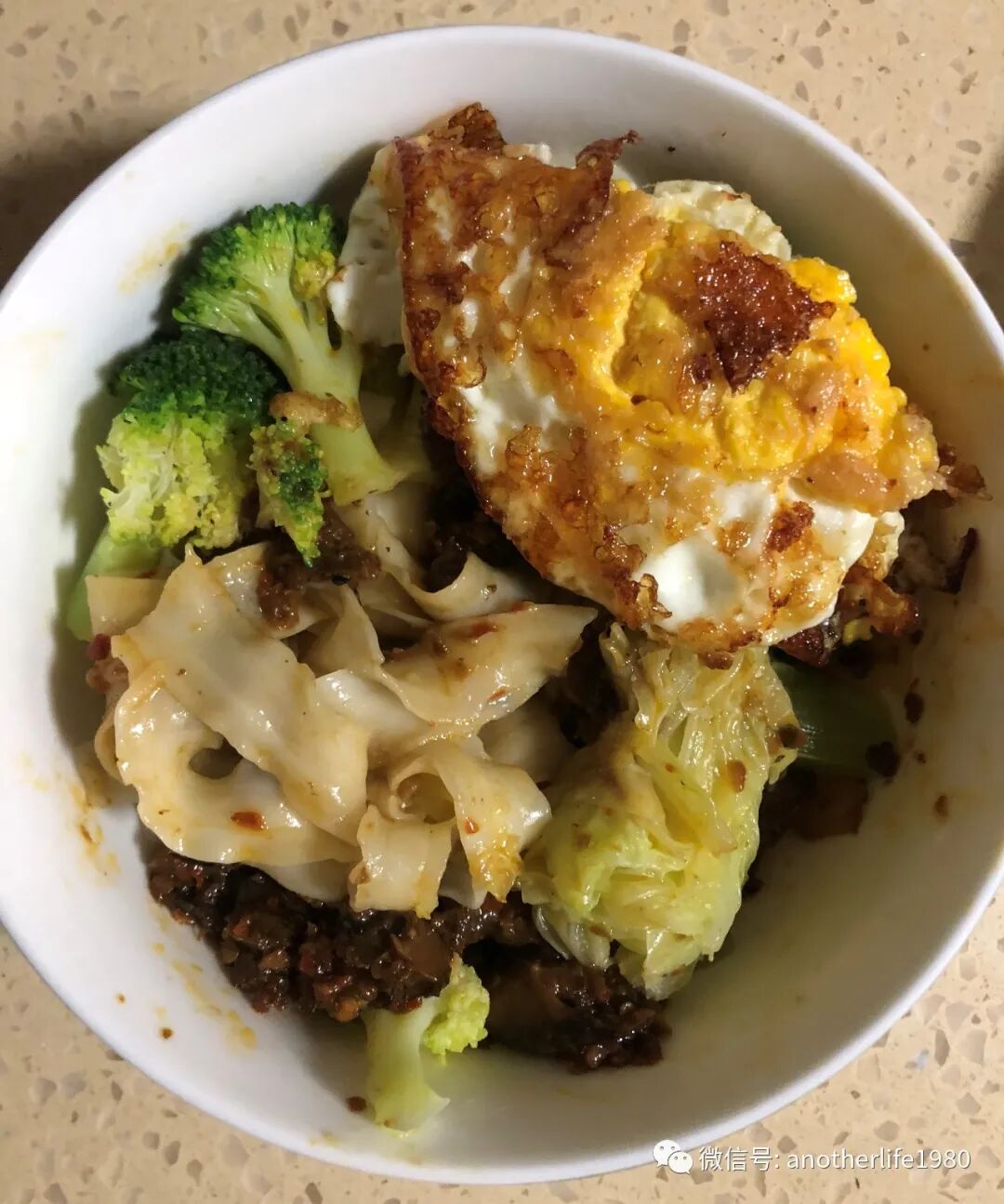 以后每天中午,煮点面条,扔几片菜叶子,再煎个鸡蛋。