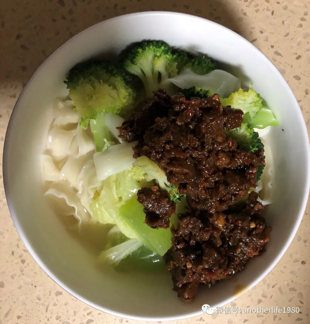 于是,周末在家熬了一锅牛肉酱,这样每天中午可以煮点面条拌着吃。