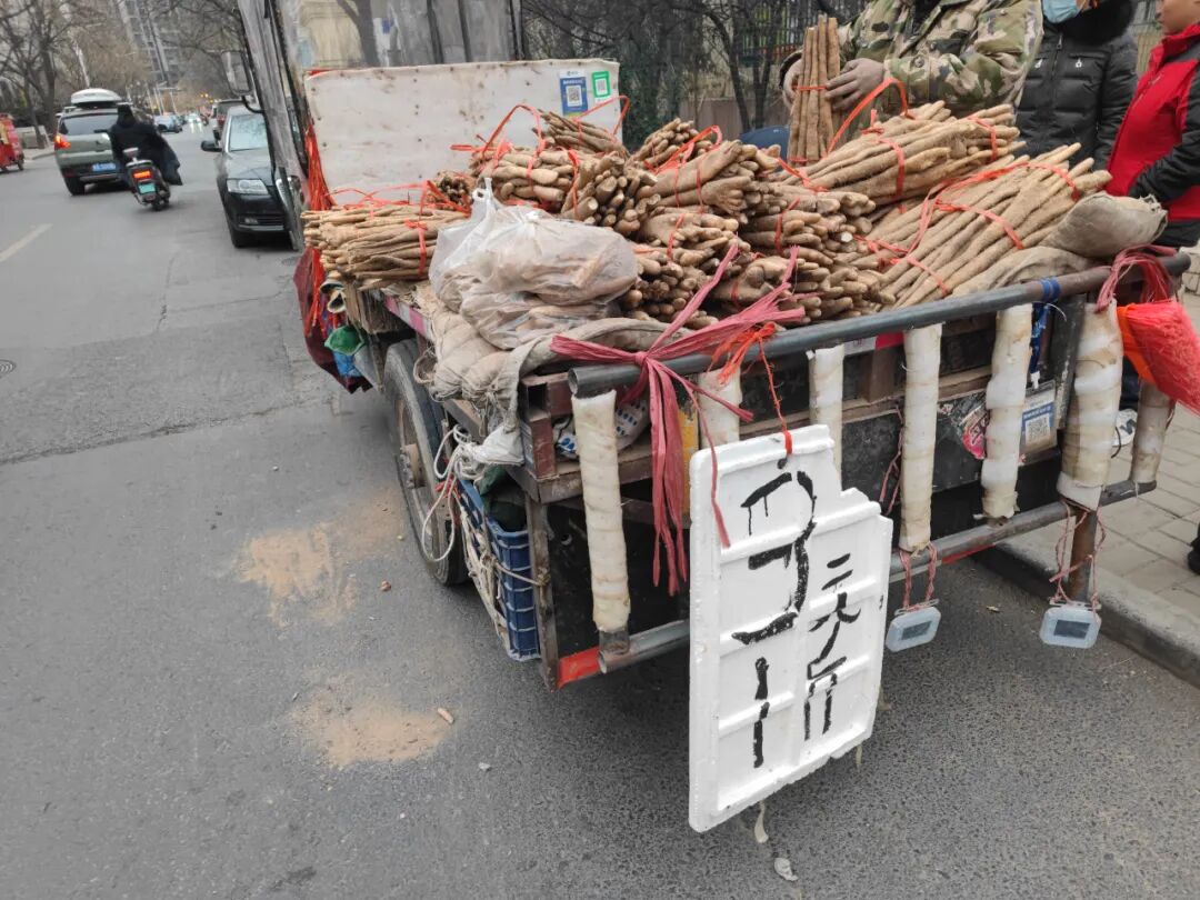 拖拉机卖铁棍山药,3元一斤。