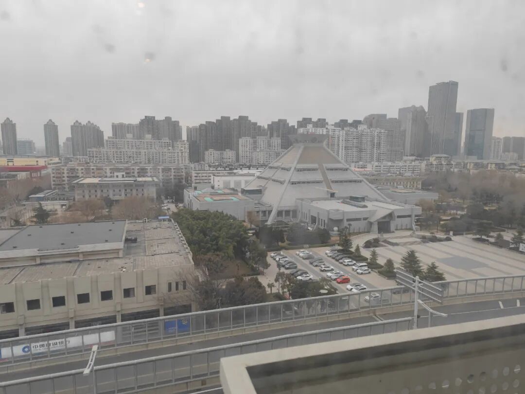 河南省博物院就在窗外,今天周一闭馆,明天去。