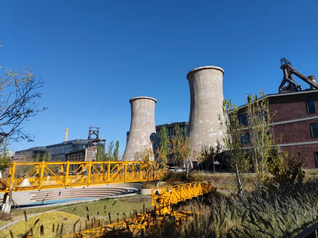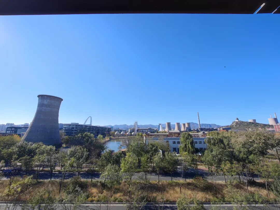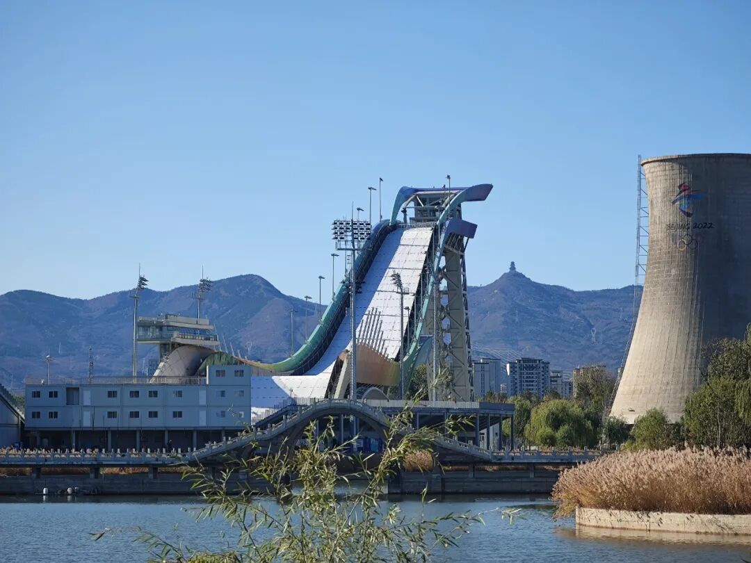 首钢新大桥、滑雪大跳台和几座废弃的冷却塔。