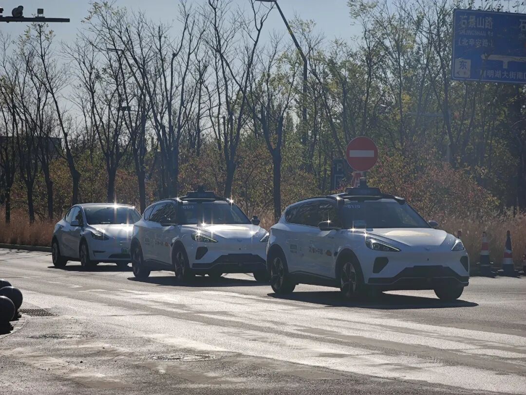 园区里还有无人驾驶汽车在来回跑,驾驶位是没人的。